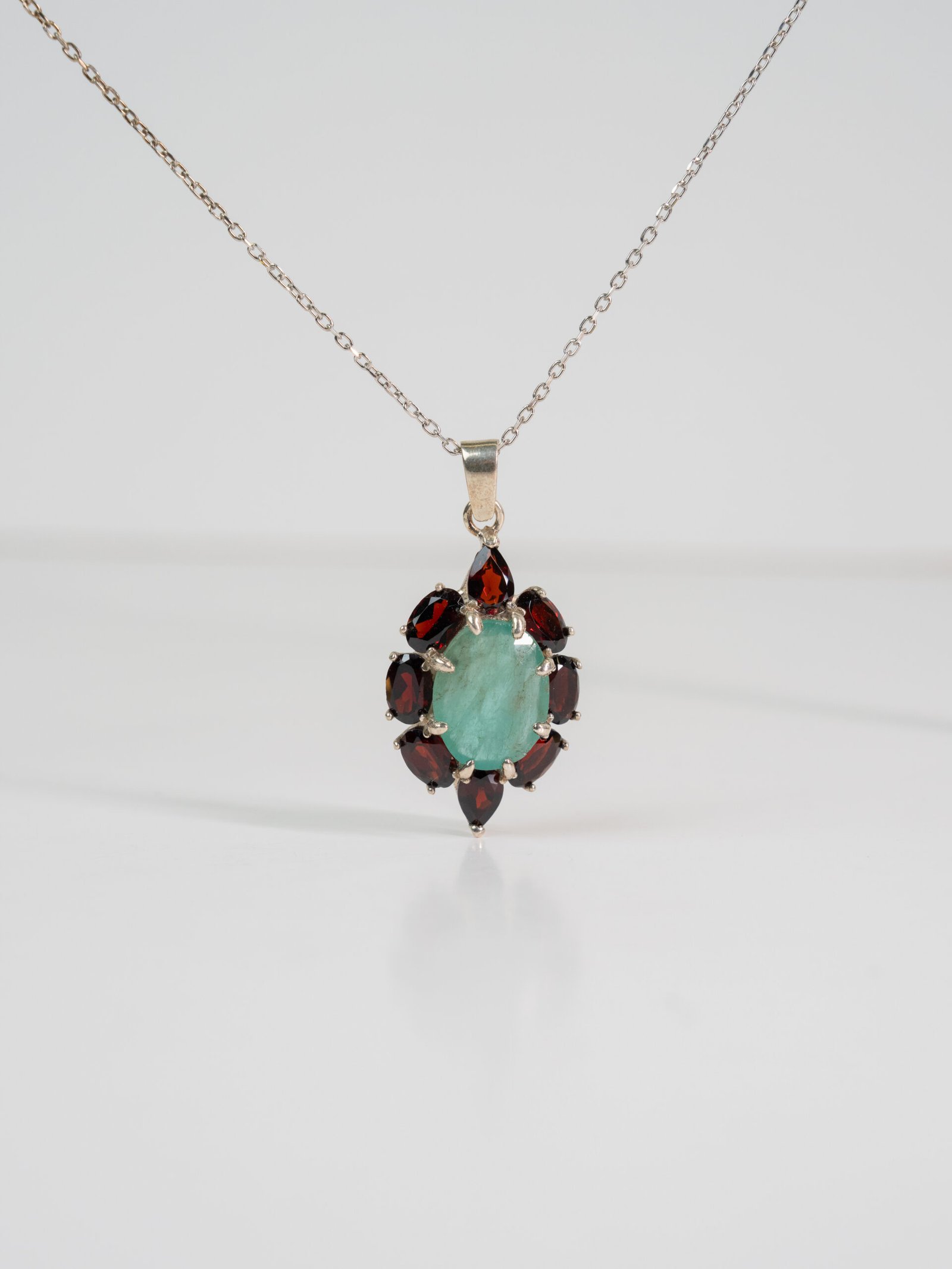 A refined pairing of Emerald and Garnet. Emerald symbolizes growth and renewal, while Garnet represents strength and vitality. Together, they create a balanced expression of elegance, richness, and natural energy.