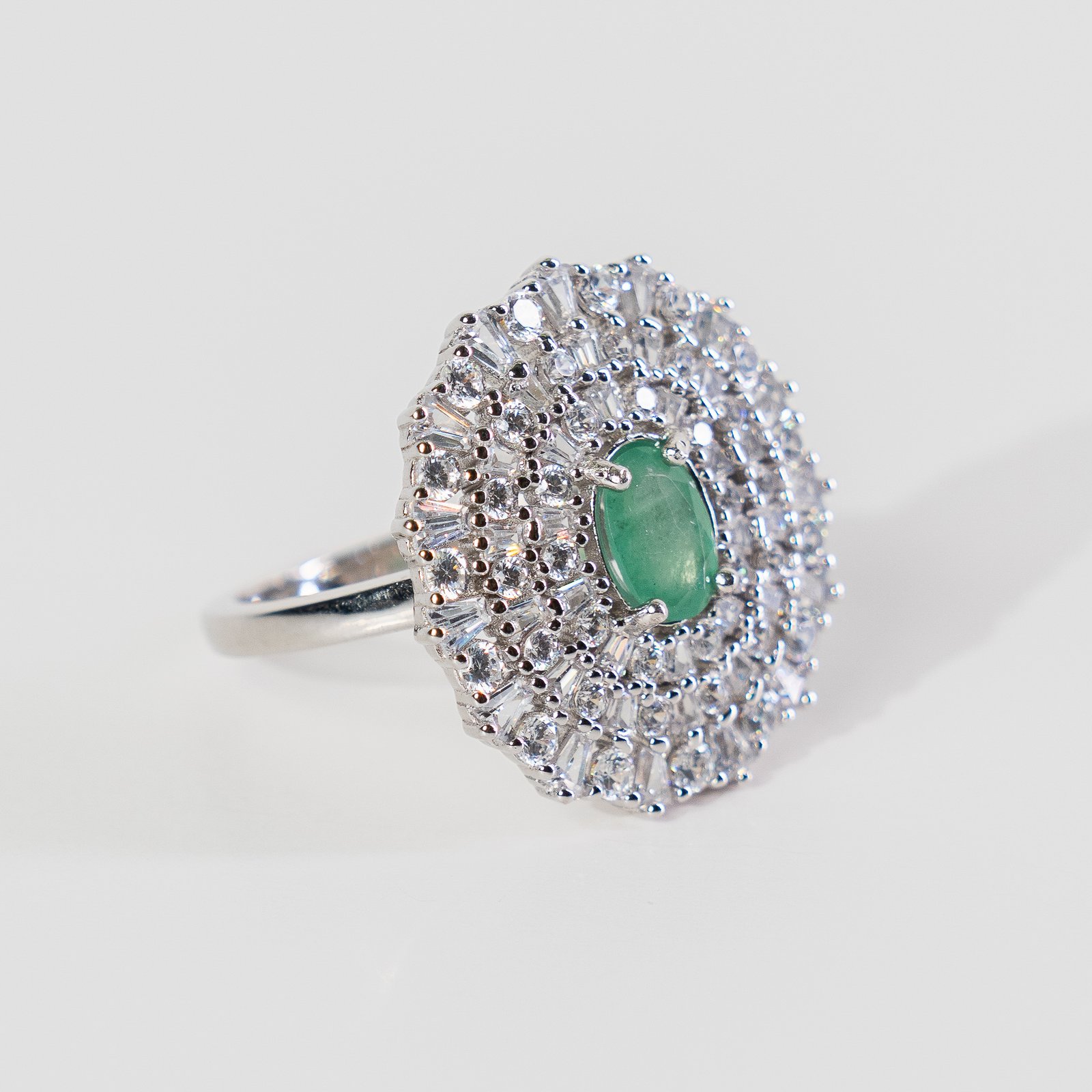 Emerald is a precious gemstone known for its rich green color and natural beauty. It symbolizes growth, harmony, and renewal, and has been valued for centuries in fine jewelry. Emeralds are admired for their unique inclusions, which make each stone one of a kind and enhance its natural charm.