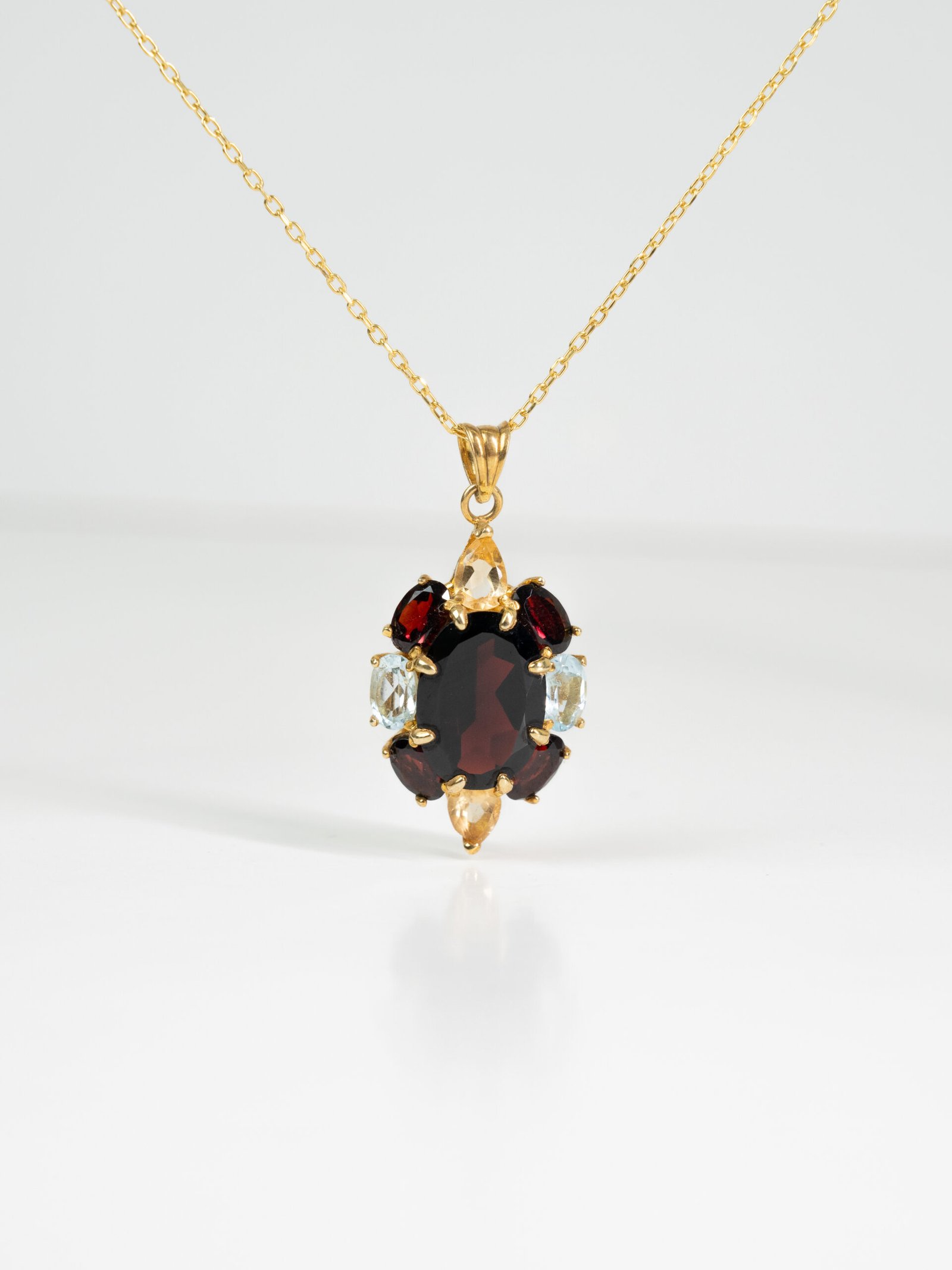 A powerful blend of Garnet, Topaz, and Citrine. Naturally unique gemstones representing strength, clarity, and joy, brought together in a radiant expression of warmth and vitality.